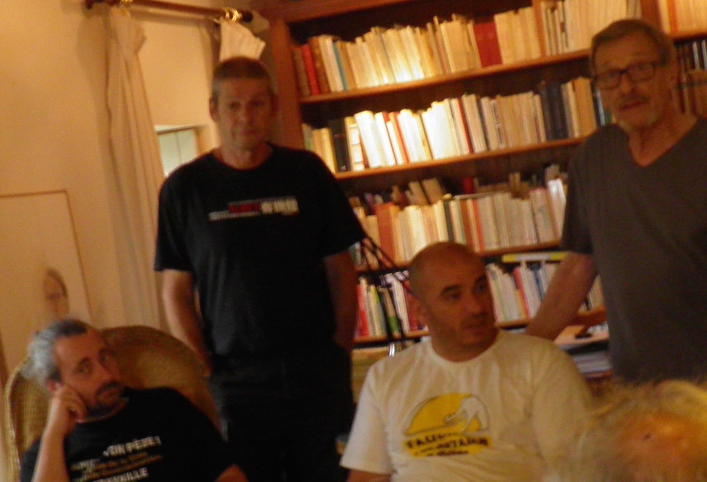 Jean-Claude avait participé au livre collectif « Que la fête commence ! » (Les Éditions Libertaires, 2015). Ce bouquin, nous l’avions conçu chez lui, à Cenves dans les collines du Mâconnais, durant l’été 2014, en nous réunissant avec Jean-François Brient, Sergio Ghirardi, Alessandro Di Giuseppe (le PAP40 de l’Église de la Très Sainte Consommation) et quelques autres. Serge Quadruppani, John Holloway et Noël Godin nous avaient ensuite rejoint dans cette aventure illustrée par Jiho.