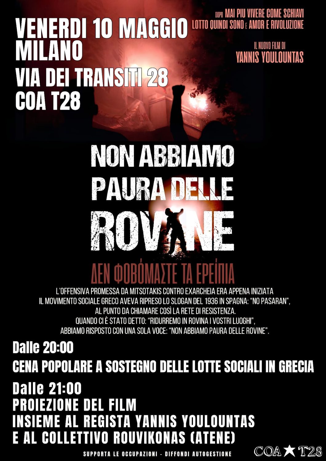 Je viens d’arriver à Milan avec plusieurs membres de Rouvikonas. En attendant la projection de ce soir (affiche en pièce jointe), j’ai une petite anecdote à vous raconter.