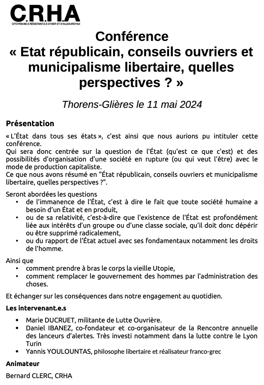 Demain : Thorens-Glières à 13h30 puis encore à 17h00 (cf. programme)