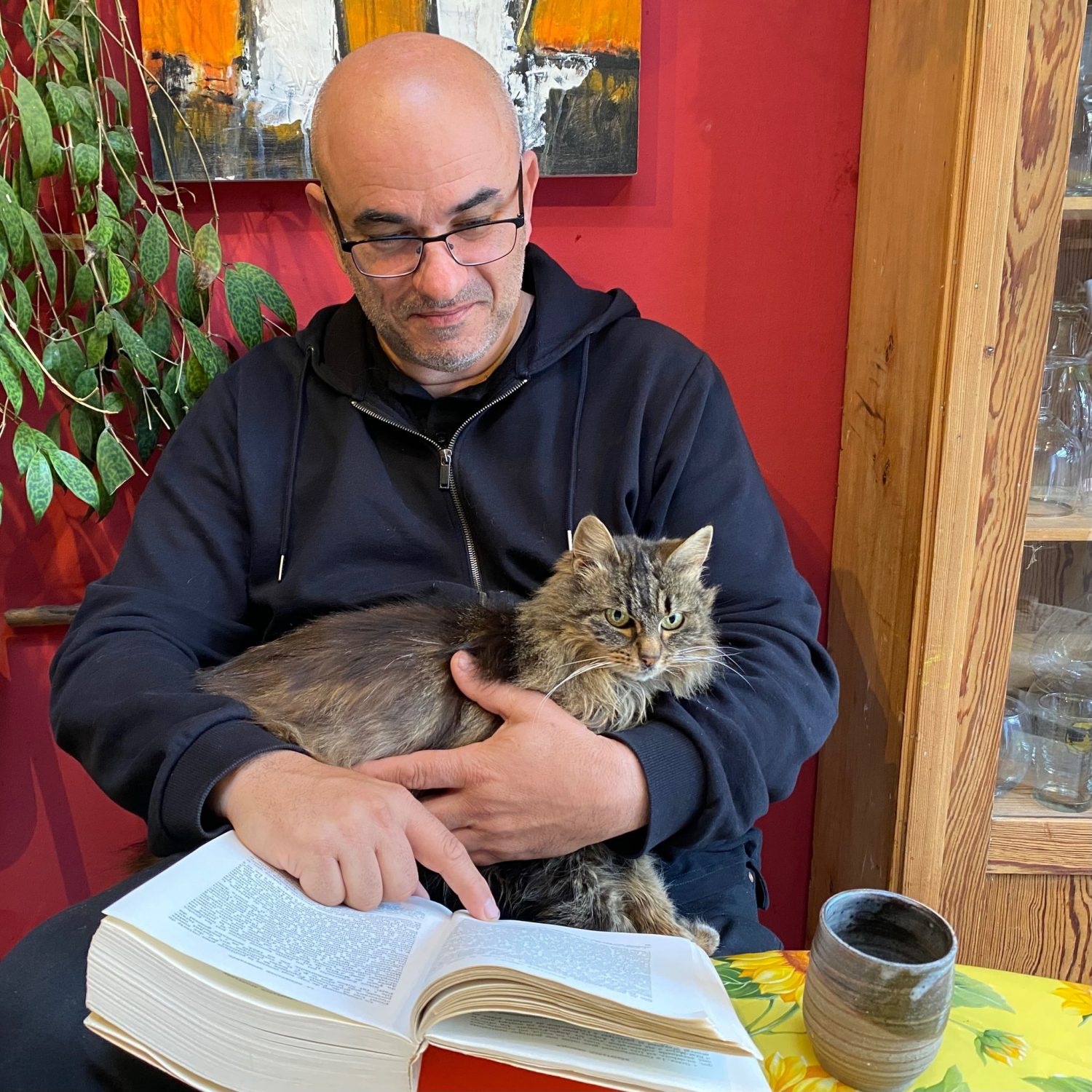 Pas facile de bouquiner en présence de Fifi, chat wallon affectueux et calin